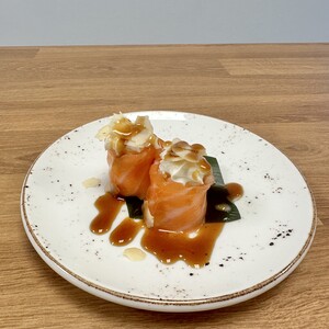 2 pezzi : Salmone , philadelphia , mandorla , teriyaki